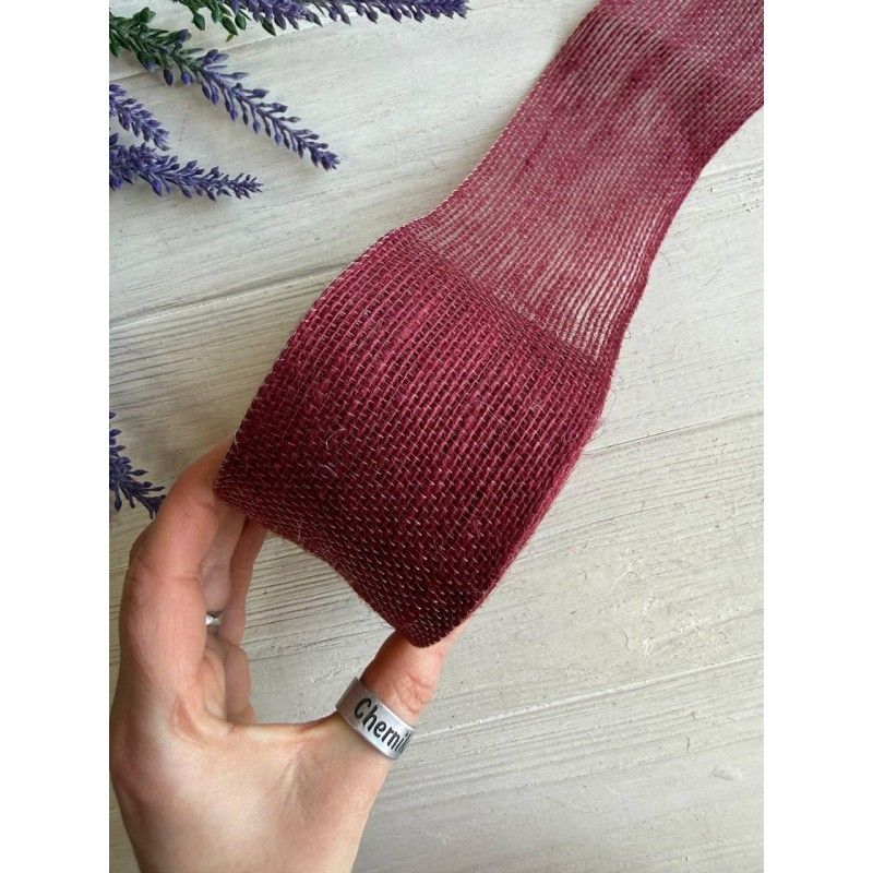 Стрічка мішковина 4 см бургунді 10 метрів