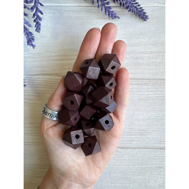 Намистини дерев'яні куб, 16 мм бордово коричневі  500 грамів