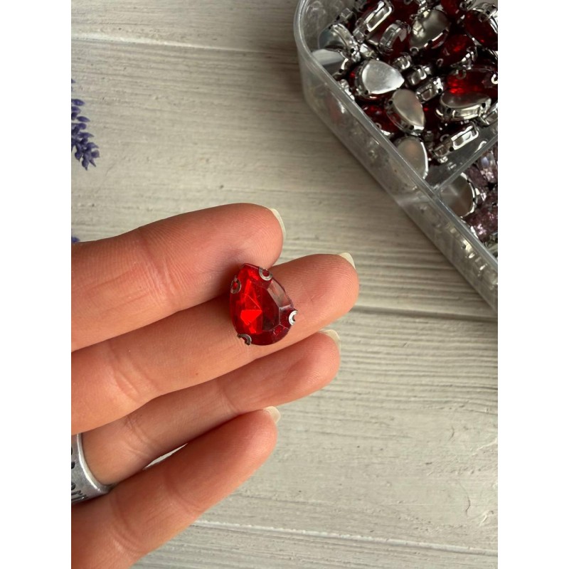 Стрази в цапах пришивні Крапля 14*10 мм червоні 10 шт