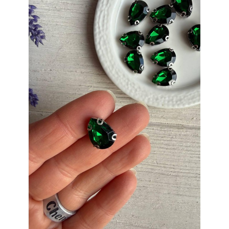 Стрази в цапах пришивні Крапля 14*10 мм темно зелені  10 шт