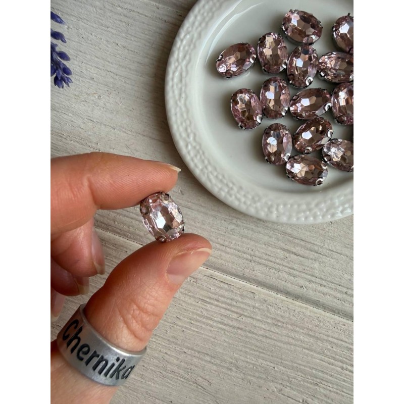 Стрази в цапах пришивні Овал 14*10 мм блідо рожеві 10 шт