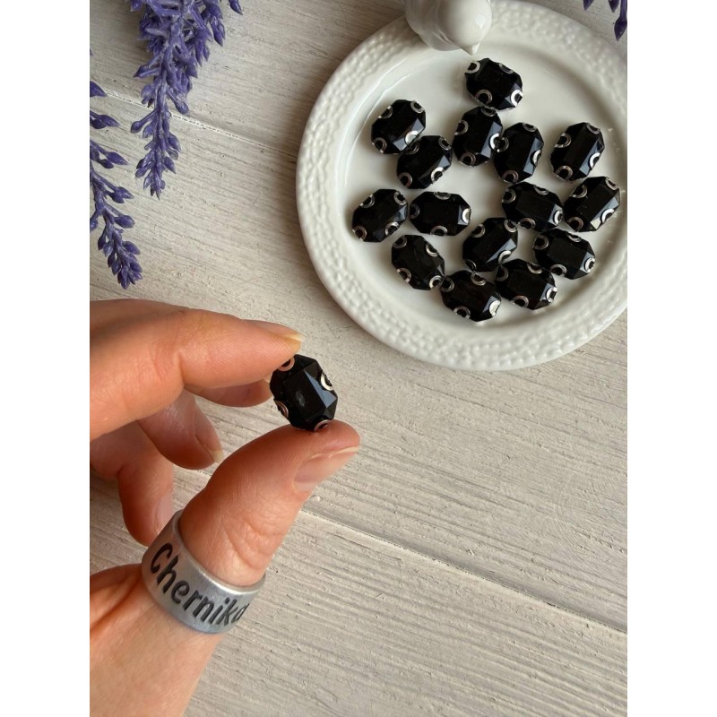 Стрази в цапах пришивні прямокутні 14*10 мм, чорні 10 шт