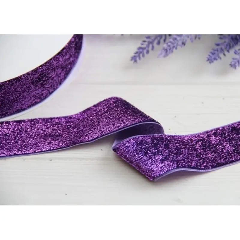 Стрічка оксамитова люрексова " 4 см", фіолетова метрів